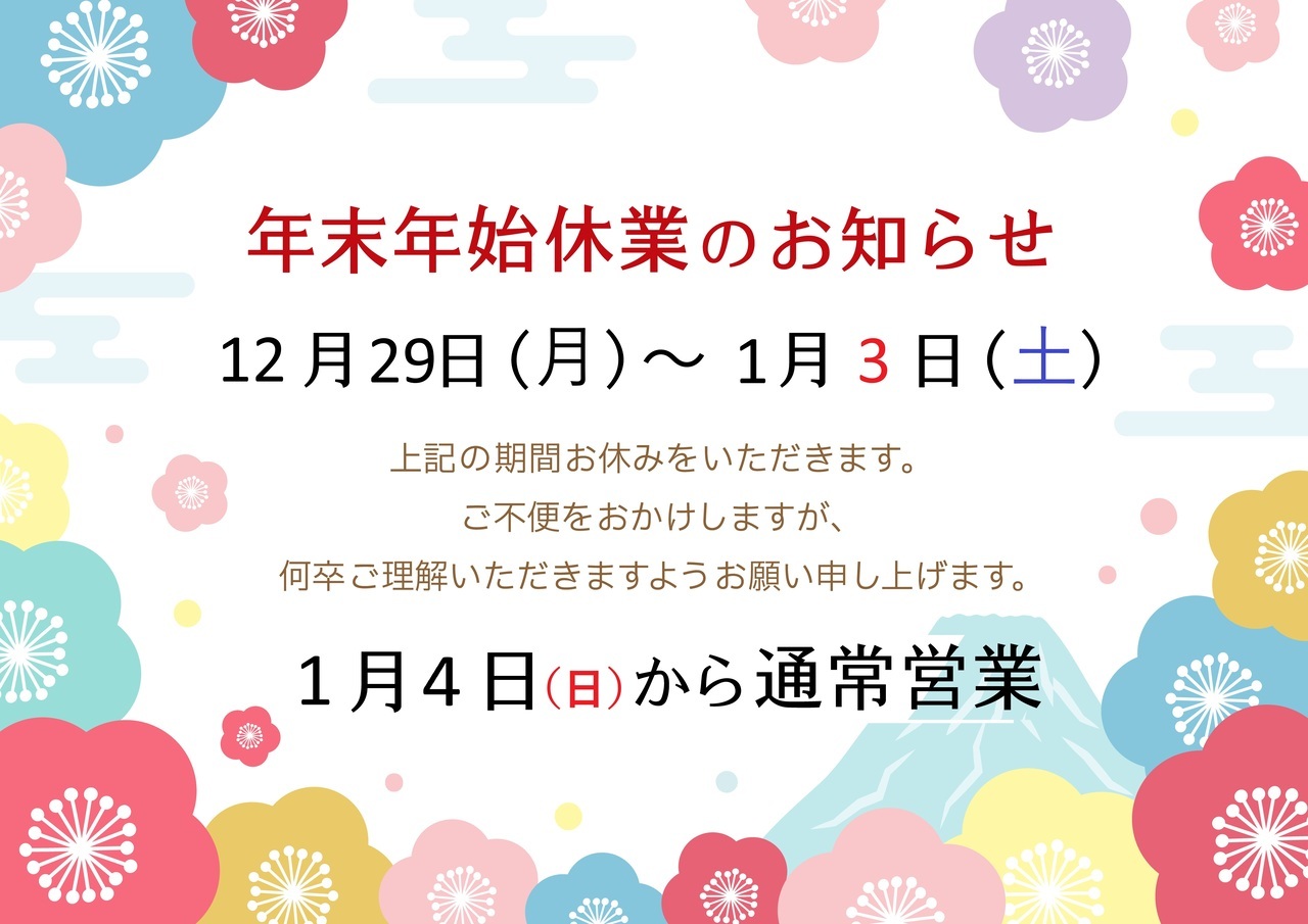 | 2025/11/24 | 年末年始休業日のお知らせを致しました。 |