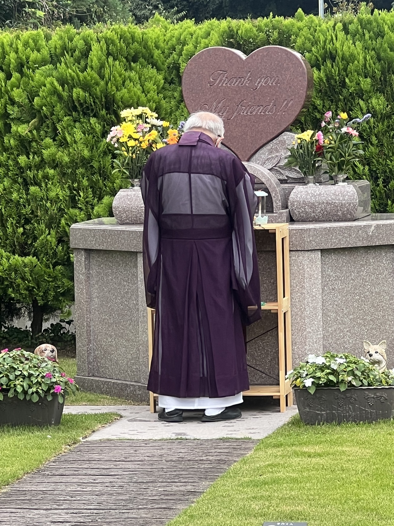 ペット霊園合祀墓前にて